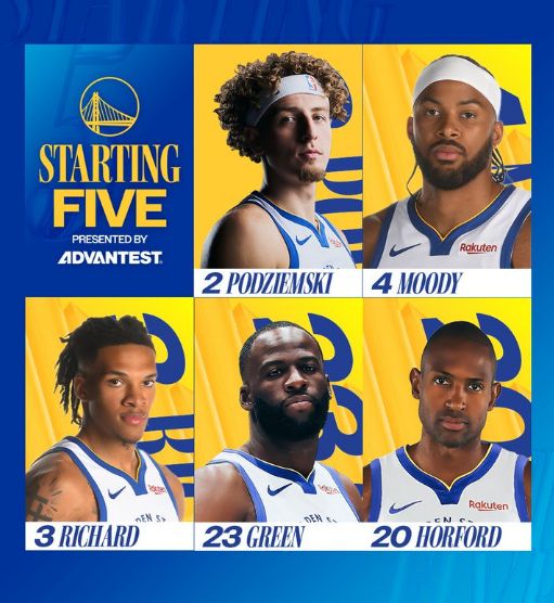 勇士两大核心缺席,库里继续因伤缺席,上一场伤退的巴特勒也缺席,追梦领衔首发五人组,梅尔顿复出迎来新赛季首秀。